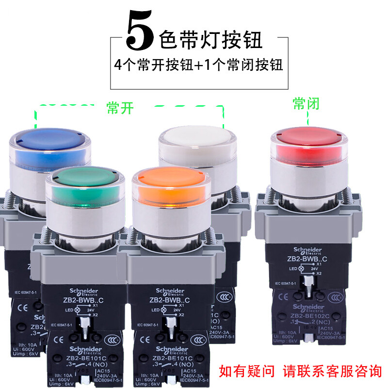 Schneider self-reset with lamp button switch XB2BW33B1C green normally open 24V 220VXB2BW34M1C