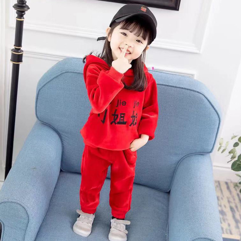 Children's clothing boy plus velvet thick cotton T baby double-sided velvet handsome Korean version of the tide autumn and winter clothing children's double-sided velvet suit