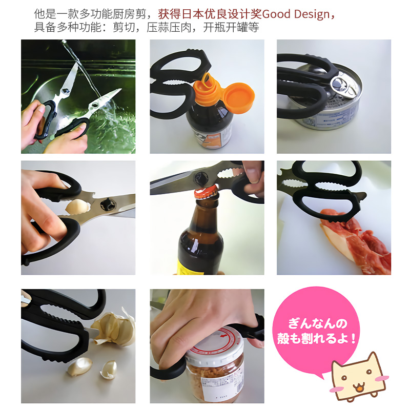 Japan imports the Japanese Yanggawa blade CANARY multifunctional housekitchen scissors outdoor barbecue cover scissors