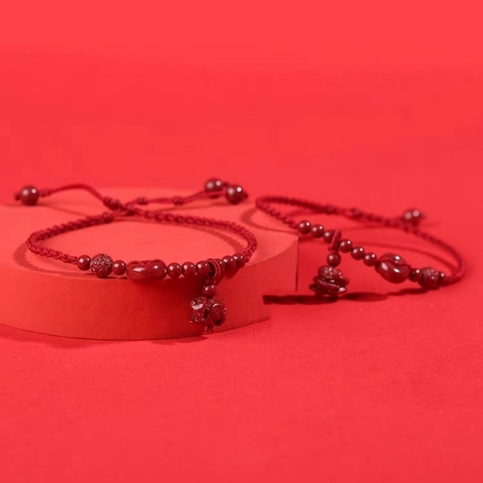 Natural raw mine Zhu sand men and women duozodiac natural Zhu sand red rope foot chain female bestie chain woman-Taobao