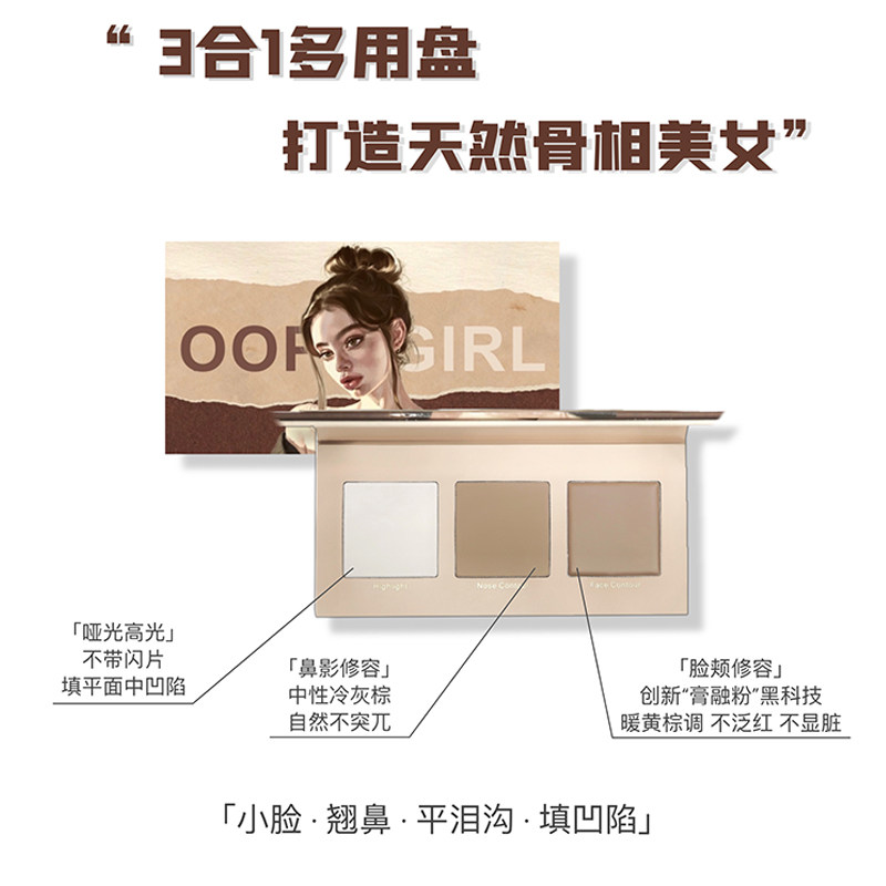 OOPS GIRL seamless three-color trimming plate matte high-gloss face brightening nose shadow shadow contour integrated plate female