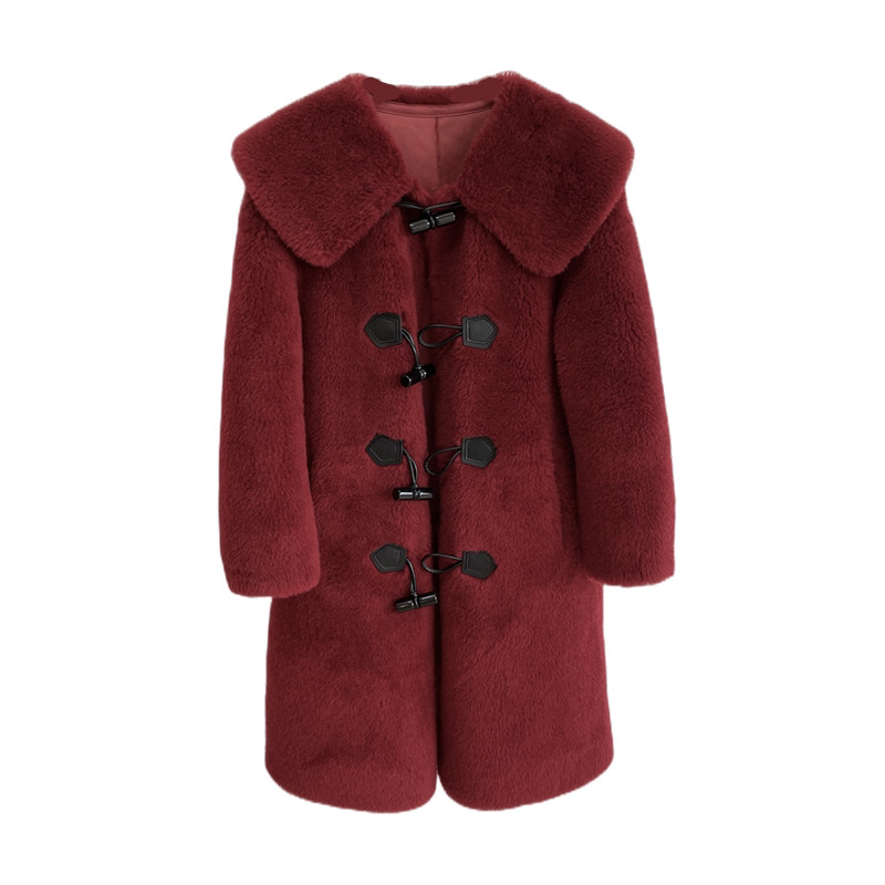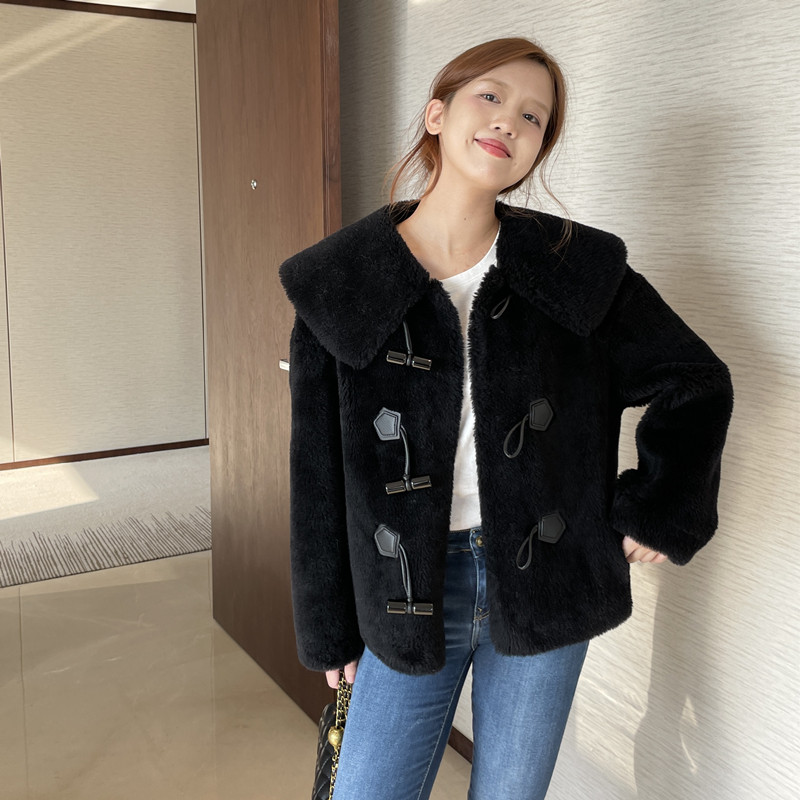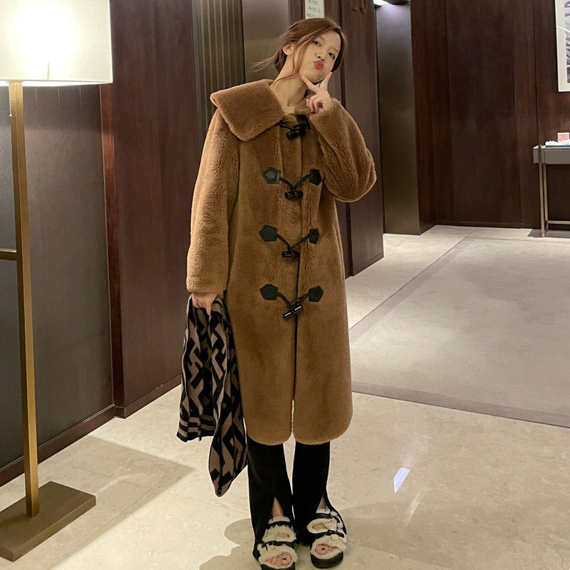 Lamb wool coat women's 2022 new sheep shearling coat fur one navy collar horn buckle mid-length winter
