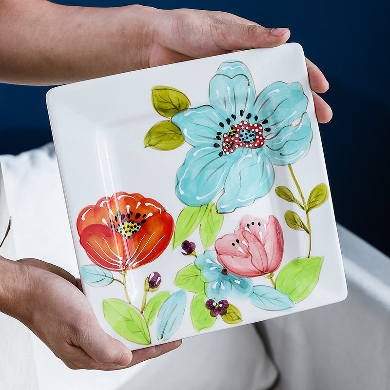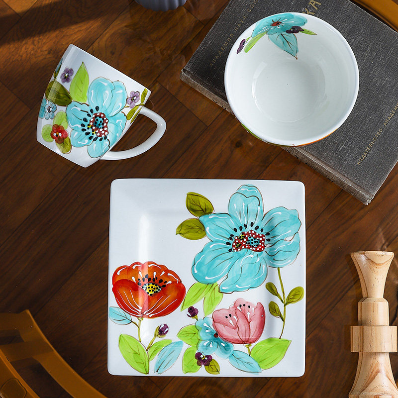 American Flower Glaze Ceramic Plate Bowl Breakfast Cup Microwave Microwave Fitness Bowl Dishware