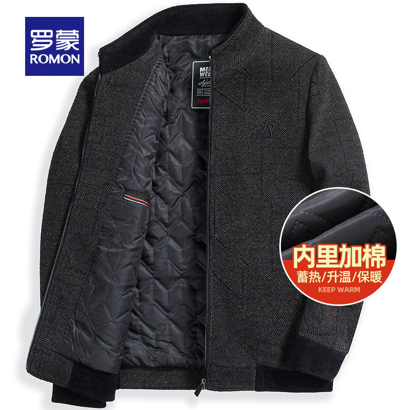 (Add Cotton Warm) Romon men's short style collar jacket 2023 Winter cotton clothes casual jacket thickened cotton suit-Taobao