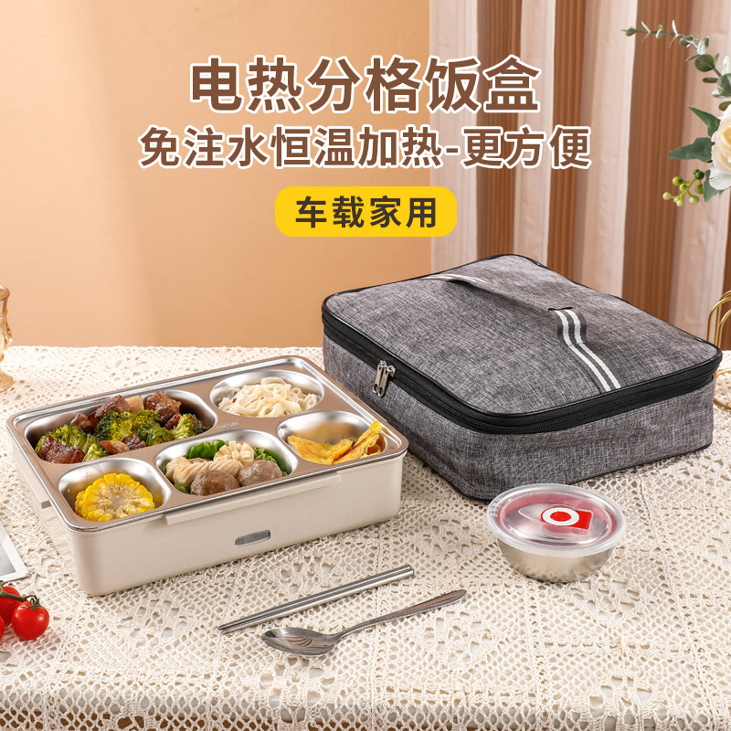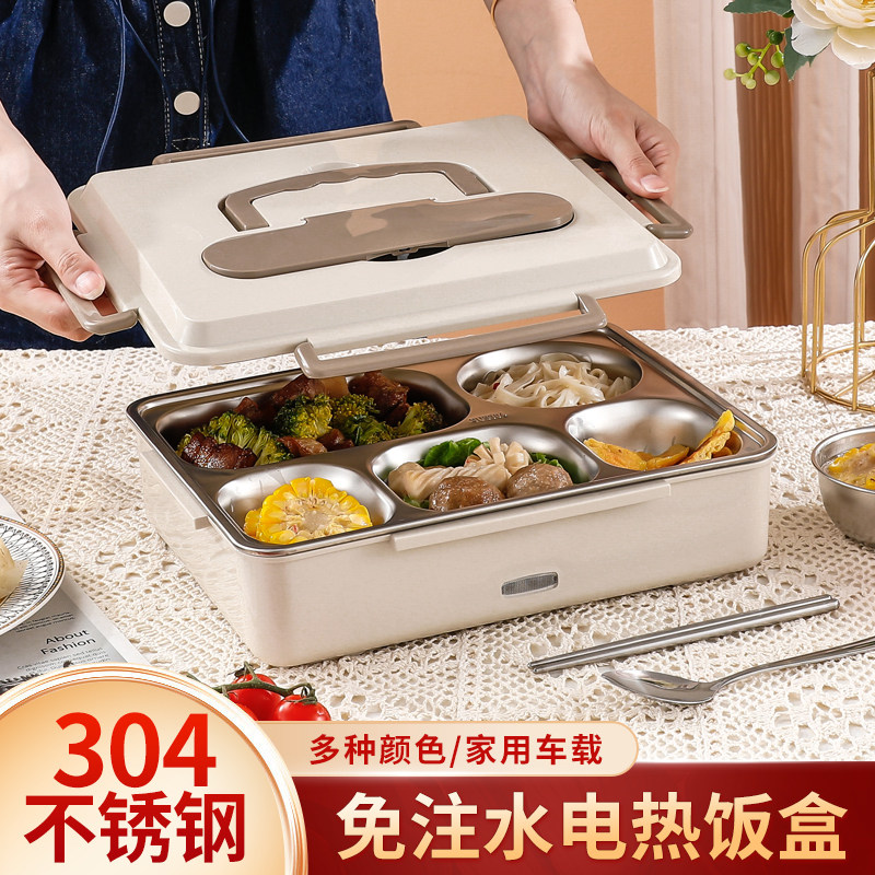 304 stainless steel heating lunch box free water injection electric hot lunch box large number on-board insulated lunch box convenient and self-hot dining box-Taobao