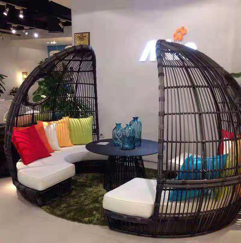 Outdoor Rattan Lying Bed Scenic Garden Bird Cage Sofa B&B Net Red Bird Nest Round Bed Outdoor Villa Leisure Furniture