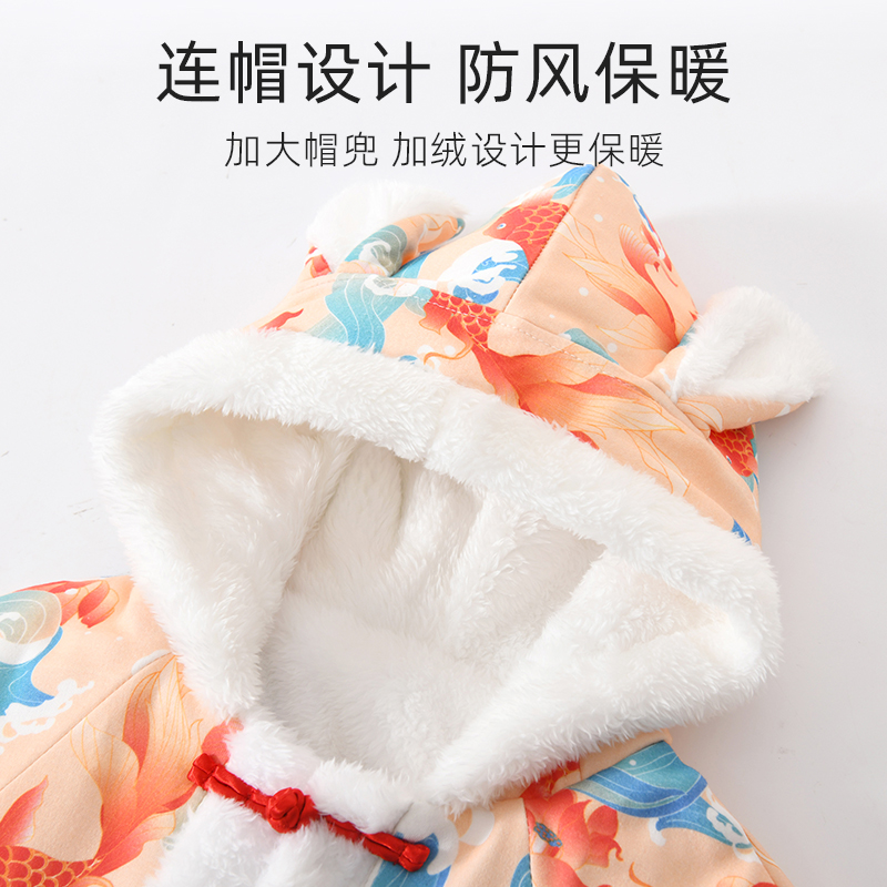 Baby Cloak Autumn Winter Out of Windproof Clothes Wind Shield Girl Jacket Thickened huddles Stuffed With Velvet Baby Children Clothed-Taobao