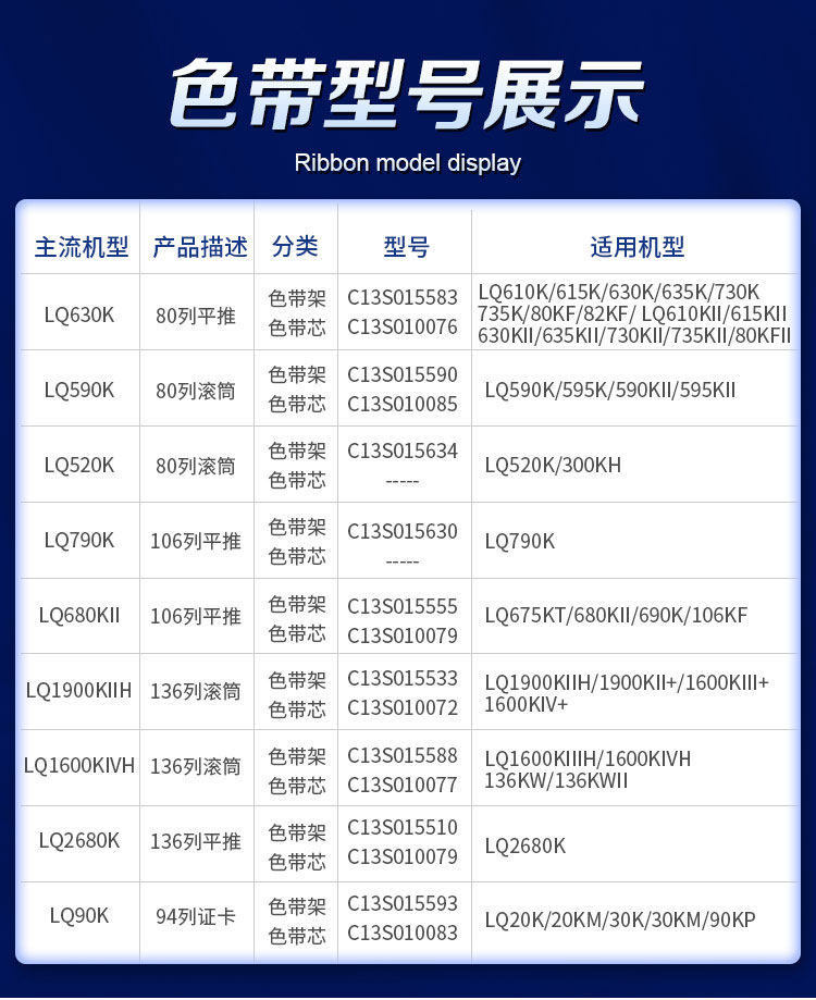 LQ630K color band core LQ630K color band frame LQ590K color band core (one box 5 bar) LQ590K color band frame LQ680KII color band core LQ60KII