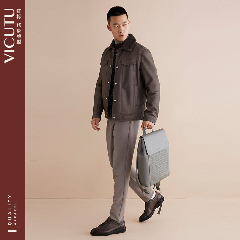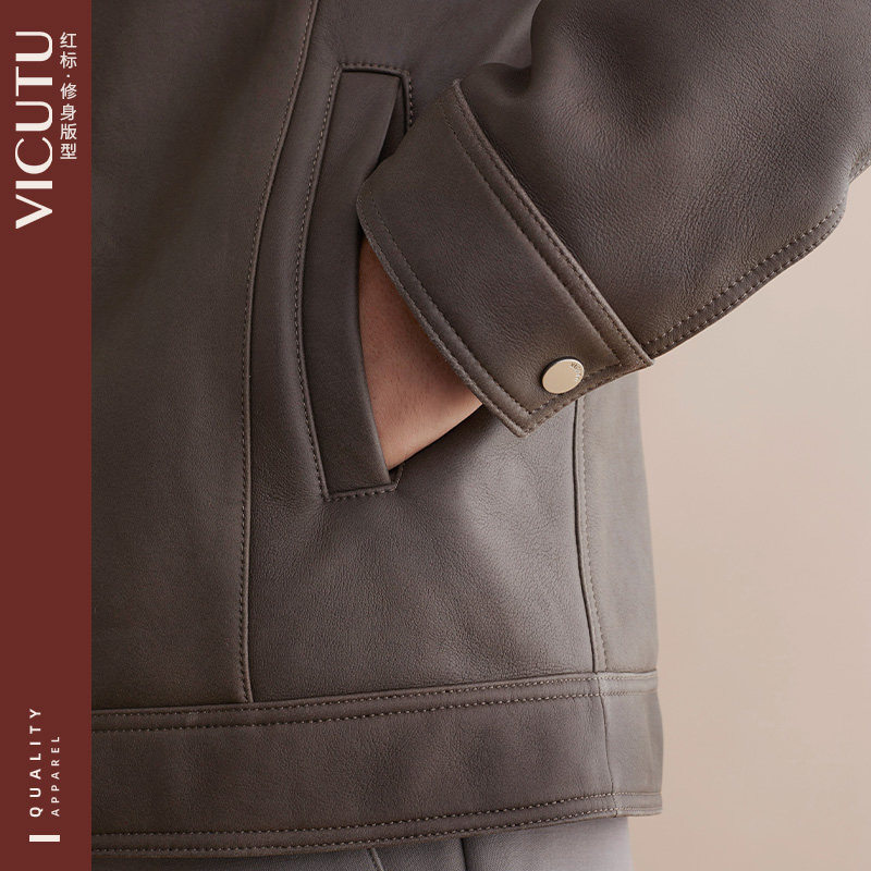 VICUTU Widodo Men's leather jacket Spring-autumn comfortable and skin-friendly LIGHT WARM FASHION BUSINESS 100 LAP LEATHER-Taobao