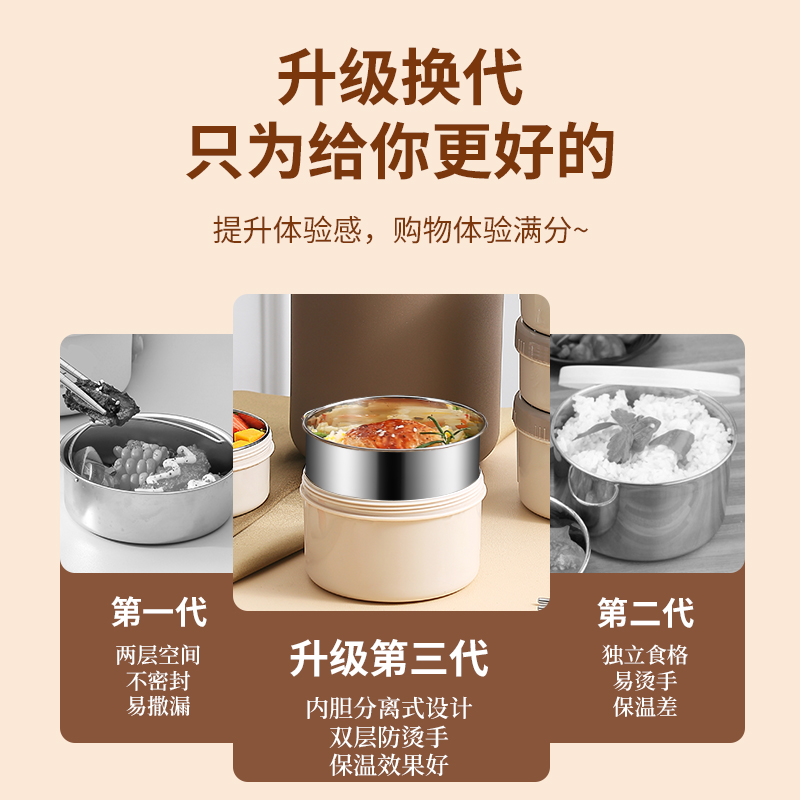 ⭐Skycat certified⭐insulated lunch box shop⭐ rice almond white 2 3L three layers⭐send insulated bag chopstick spoon case deep curl brown 2 3L three layers⭐send insulated bag chopstick spoon box rice apricot white 2 3L three