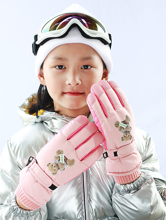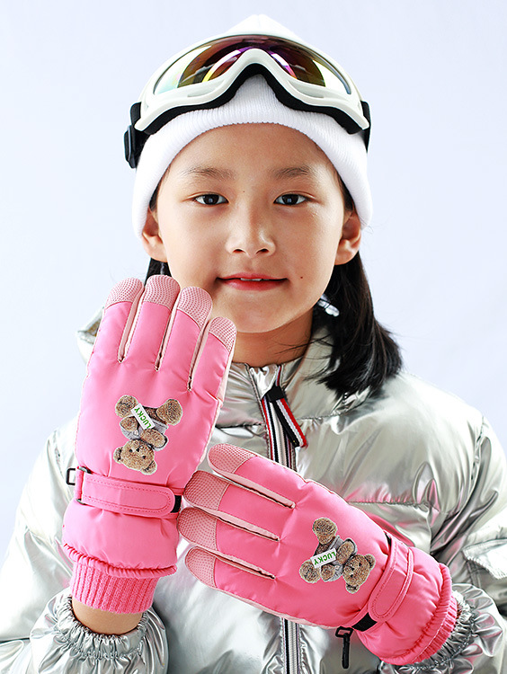 Children's Parent-child Bear Style Warm Ski Gloves Fire Arc