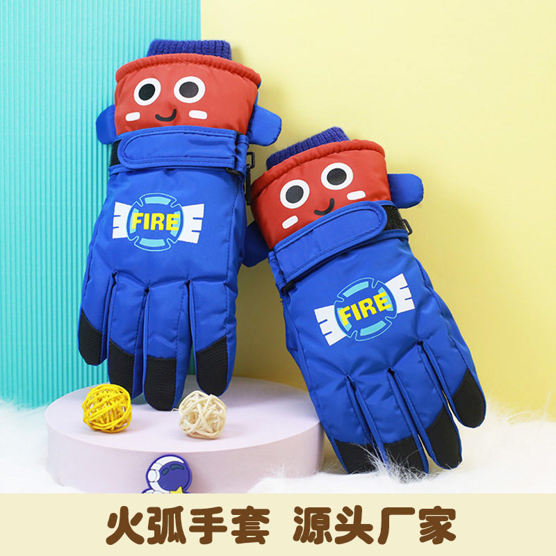 Children's cartoon robot warm ski gloves arc
