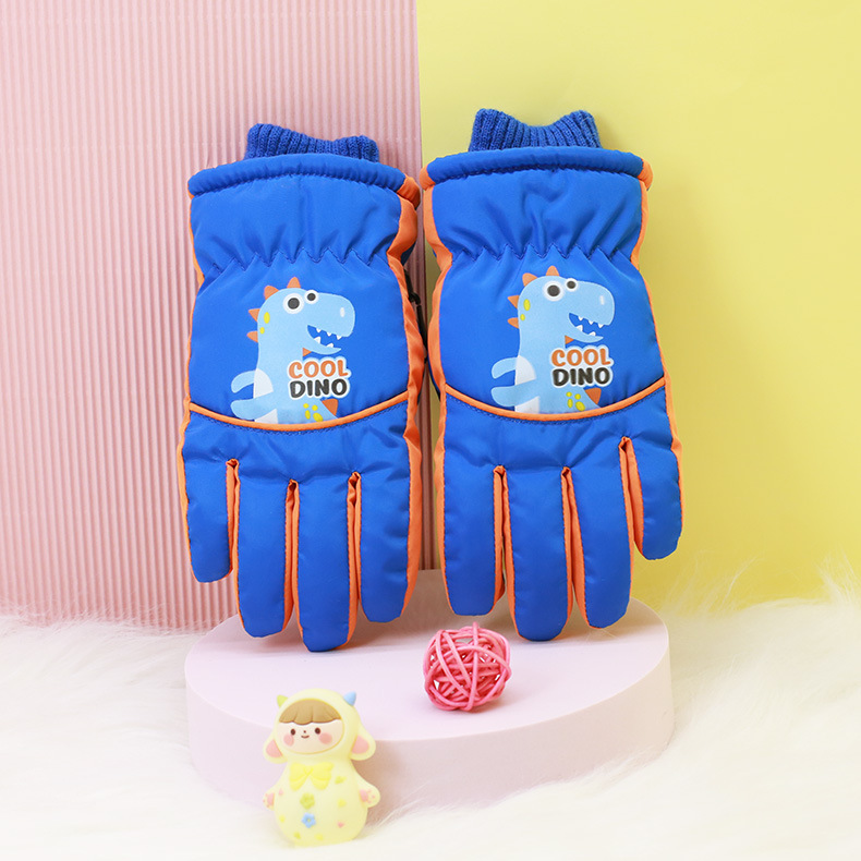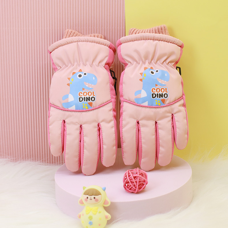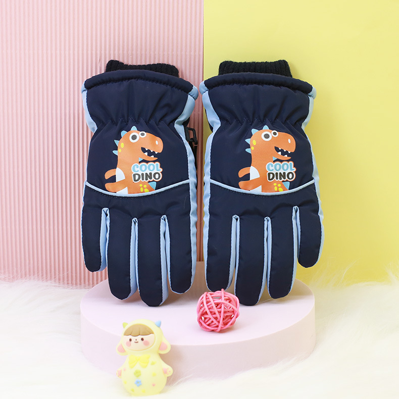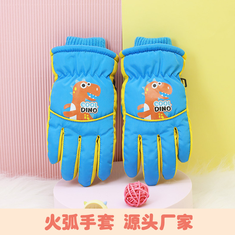 Children's cartoon dinosaurs warm ski gloves arc