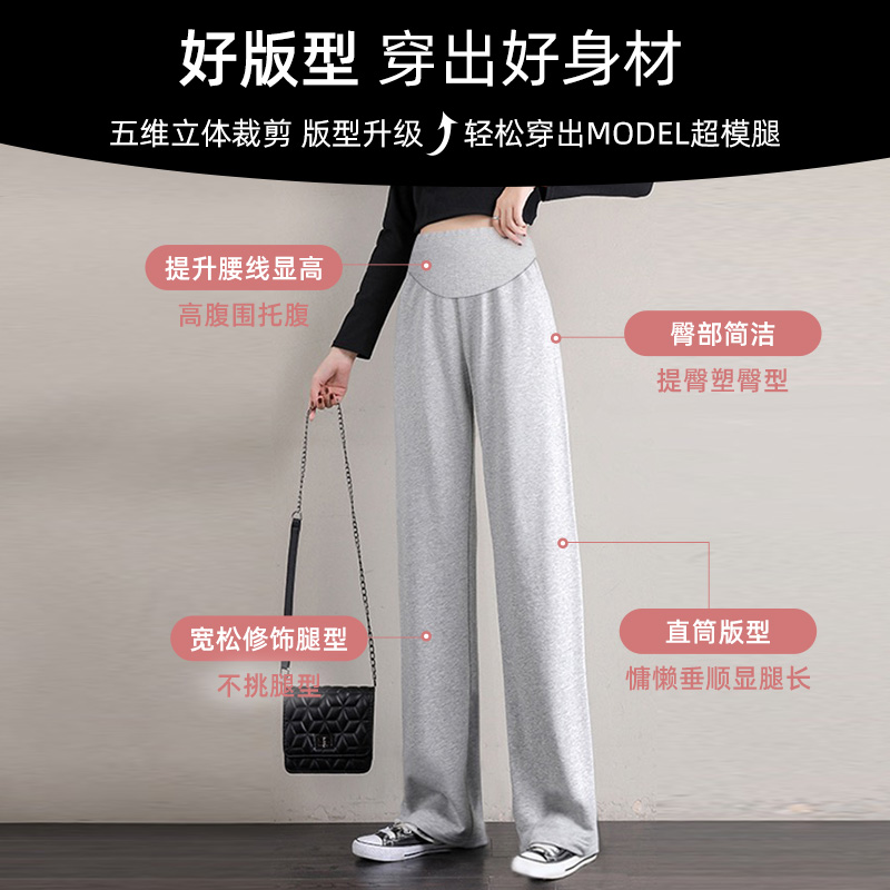 The Jing Ki Pregnant Woman Pants Spring Autumn Season Outside Wearing Broadlegged Pants Autumn Winter Big Code Straight Drum Long Pants Casual Pants Gestation Women Dress Autumn Clothes-Taobao