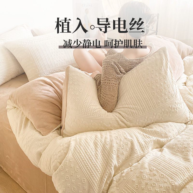 Unstamped milk Milk Suede Bed Four Pieces Of Coral Suede Winter 2023 New Gushed Bed Linen Bed 4-Taobao