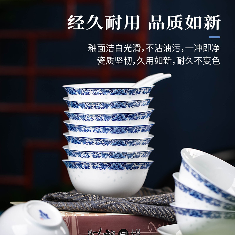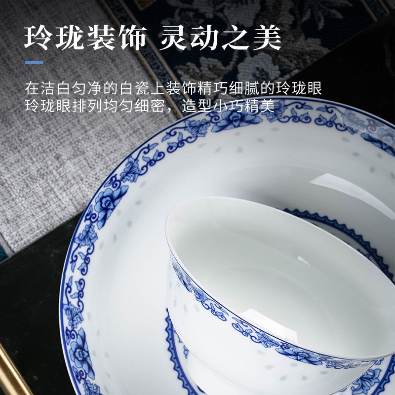 Jingdezhen Ceramic Blue Flower Lingyu Creative Tableware Set Household Rice Bowl Dish Combination Joe Move