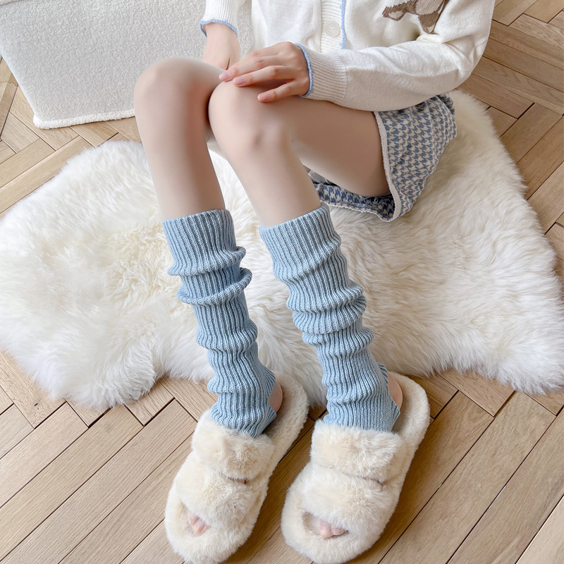 Autumn Winter Knit Socks Jacket Woman Thickened Leggings Lolita Pile Socks Socks Warm Medium Socks Japan JK white calf socks-Taobao