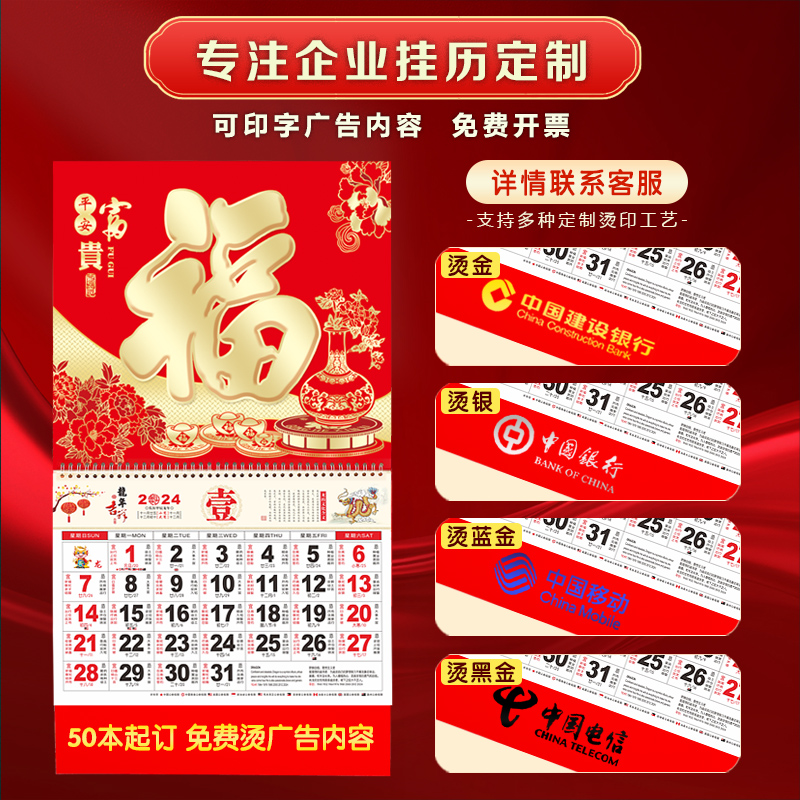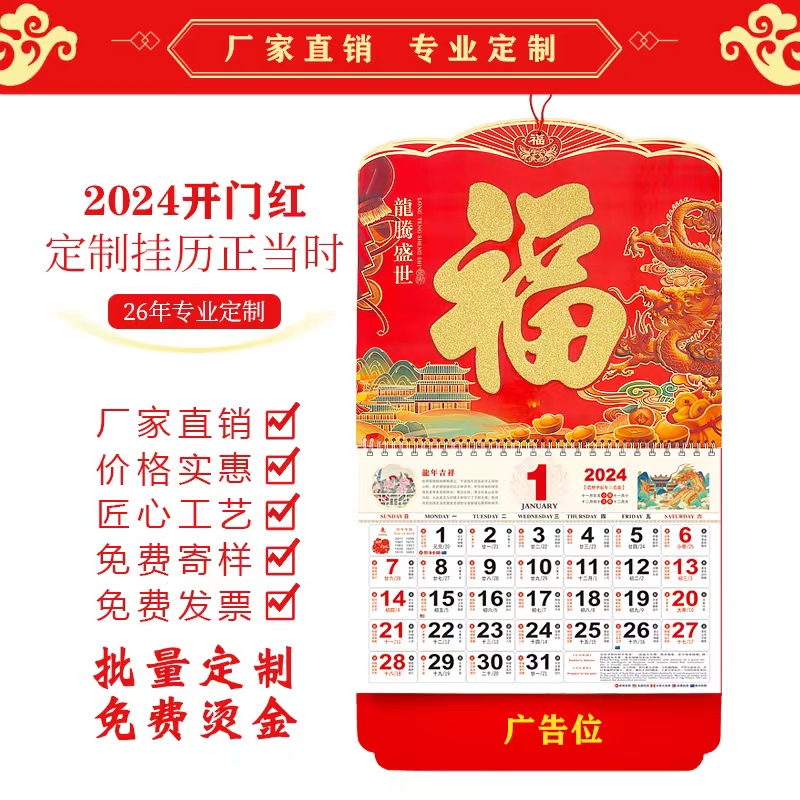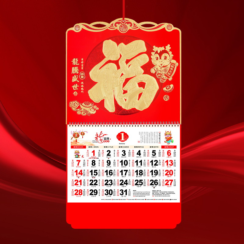 Chengtron 2024 Fu Character Hang Calendar Custom Company Ad Gold Leaf Dragon Year 2023 Calendar Hands Ripping Creative Brief Lunar Calendar Home Hanging Wall Style Hang Tag to Increase Thickening China Wind Perpetual Calendar-Taoba