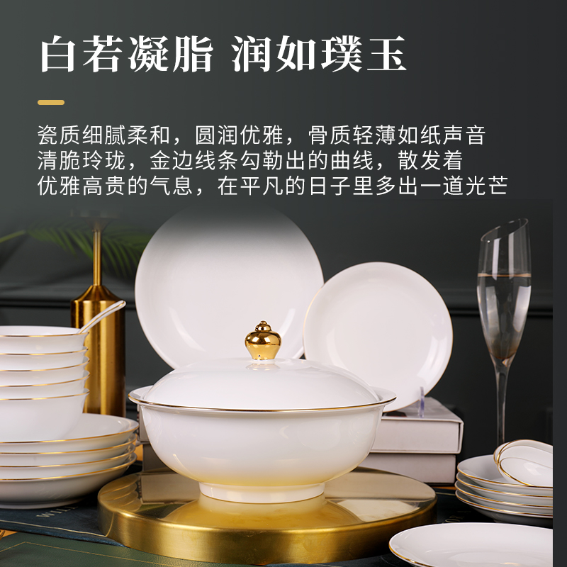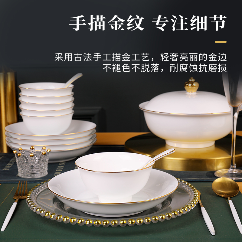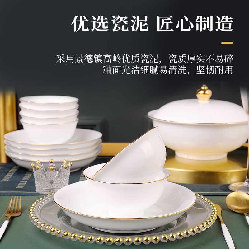 Jingdezhen Household New Chinese Pure Color Tableware Set Phnom Penh Simple Bowl Dish Combination