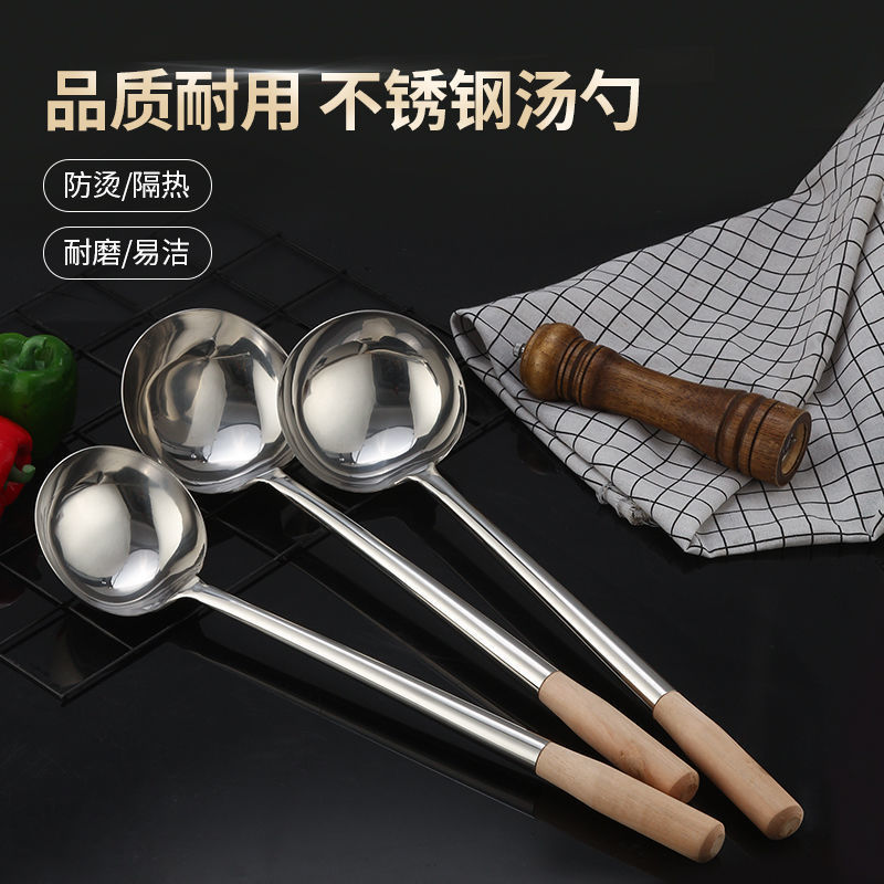 Stir Fry Large Spoon Large Iron Spoon Thickened Stainless Steel Soup Spoon Pan Scoop Pan Shovel Kitchen Accessories Household Wood Handle Steel Handle Wine-Taobao