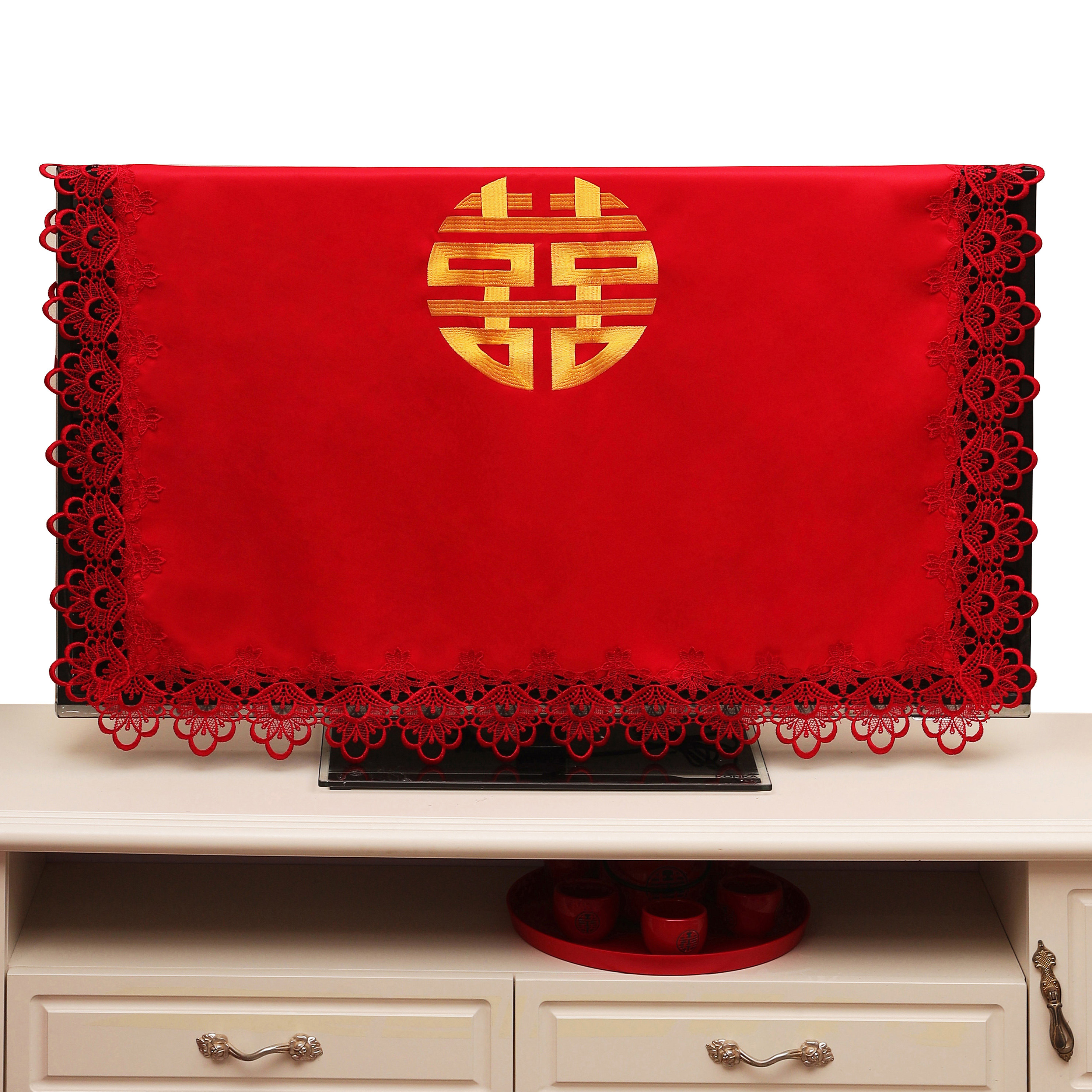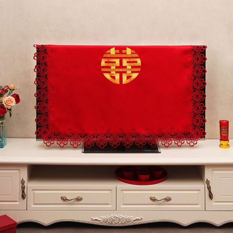Embroidered red hi word TV cover cloth 60 inches 55 wall-mounted LCD TV fabric embroidery dust cover towel