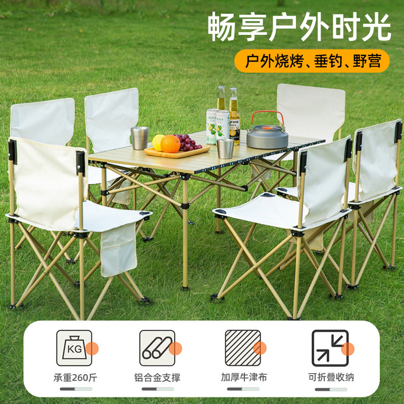 Outdoor folding tables and chairs portable table picnic camping barbecue equipment supplies aluminum alloy egg roll table set