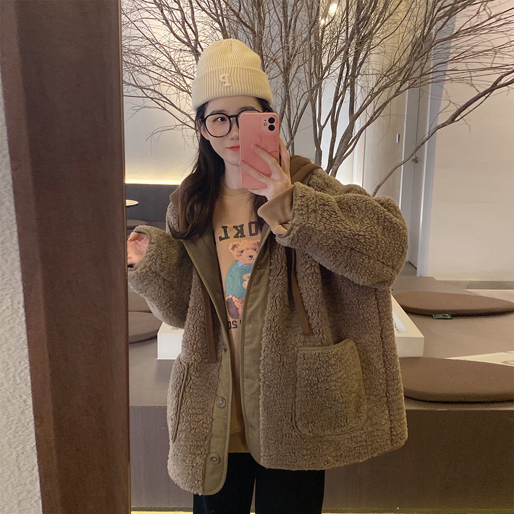 Beige color _ lamb velvet (hooded) cardigan jacket coffee color _ lamb velvet (hooded) cardigan jacket black _ lamb velvet (hooded) cardigan jacket black _ lamb velvet (round neck) cardigan jacket
