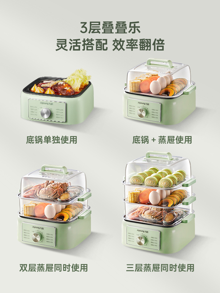 Jiuyang Electric Steamer Multifunction Home Three-layer Stainless Steel Steam Box Small Multilayer Electric Steam Cage Cooking Saucepan Pan-Taobao