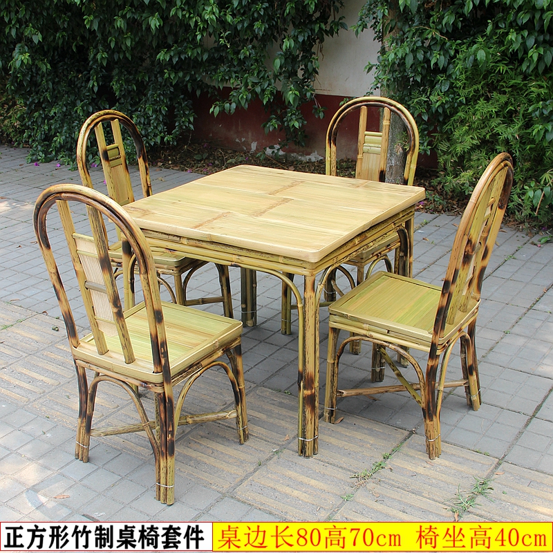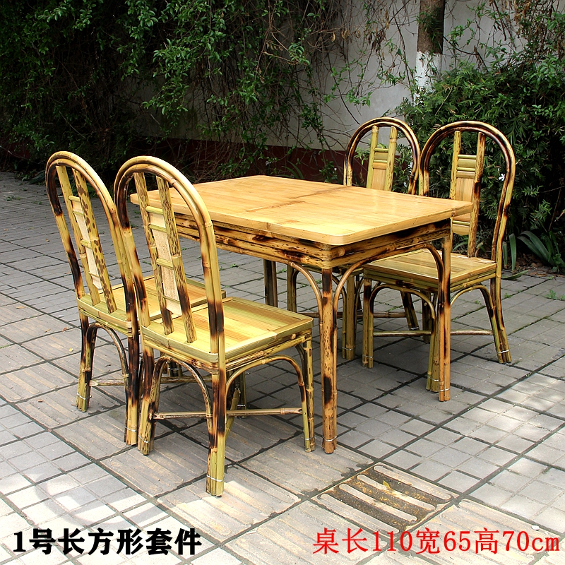Chinese style handmade bamboo table and chairs Country Bamboo Furniture Dining Hall Rectangular Table Casual Night Snack Dining Chair Home Patio