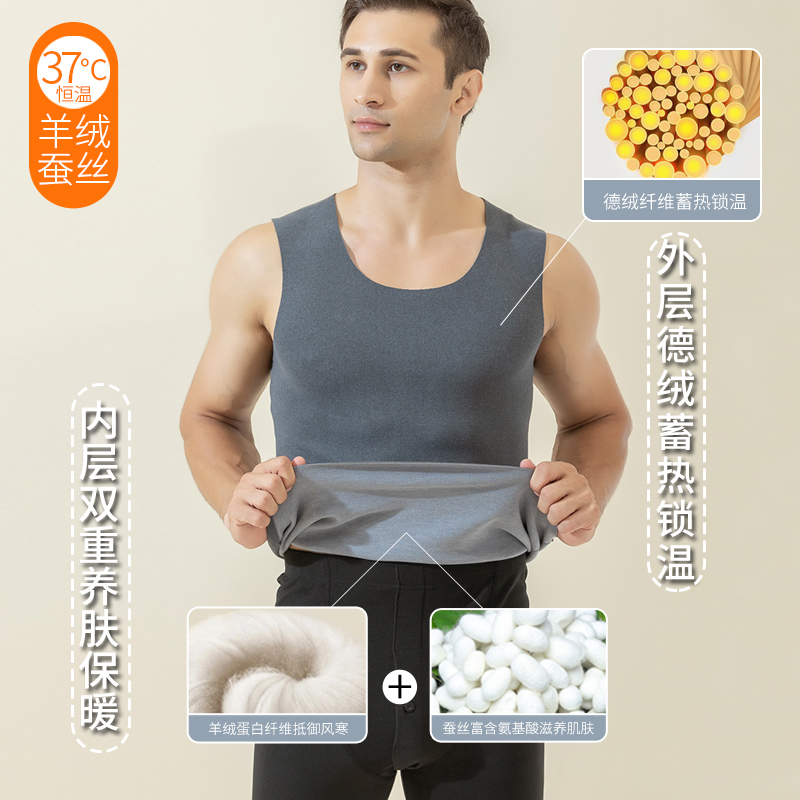 Silk Develvet warm vest men's garnter thickened autumn and winter no-marks heat-in-the-bottom internal wearing waistcoat in waistcoat-Taobao