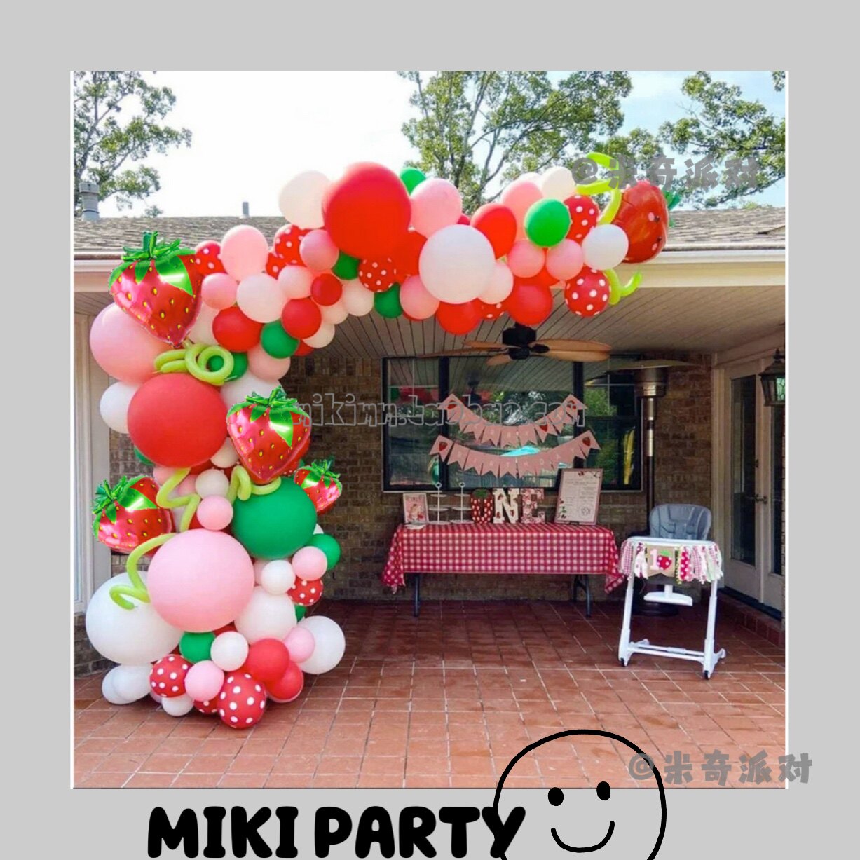 Cute Red Strawberry Theme Balloon Garland Arch Set Girls Birthday Baby Shower Summer Party Decoration