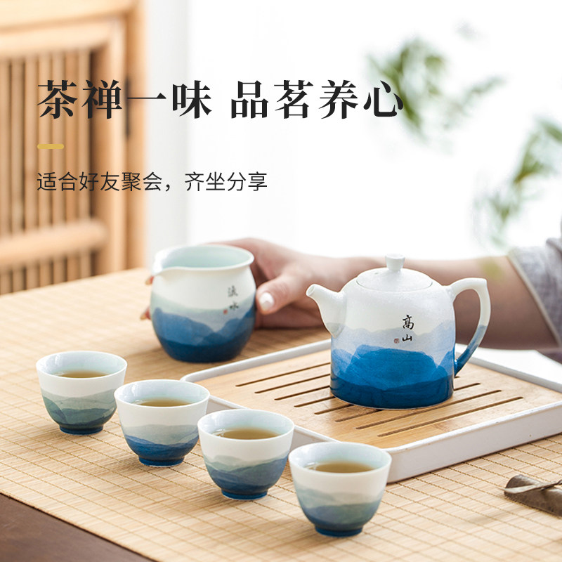 Jingdezhen Official ceramic teapot tea tea tea tea suit Home Chinese painting landscape tea tea set-Taobao