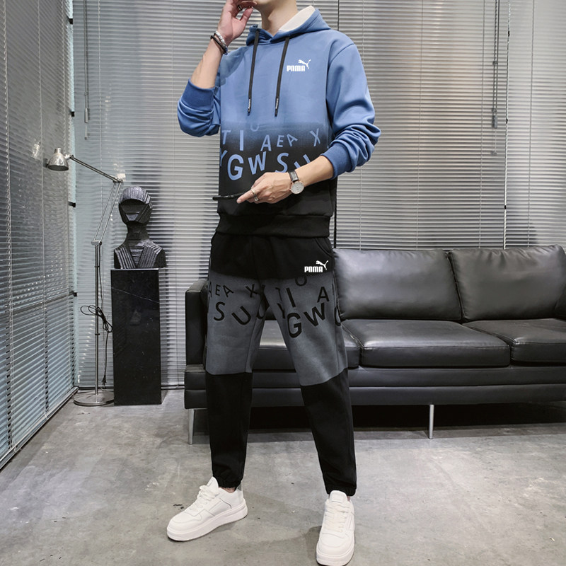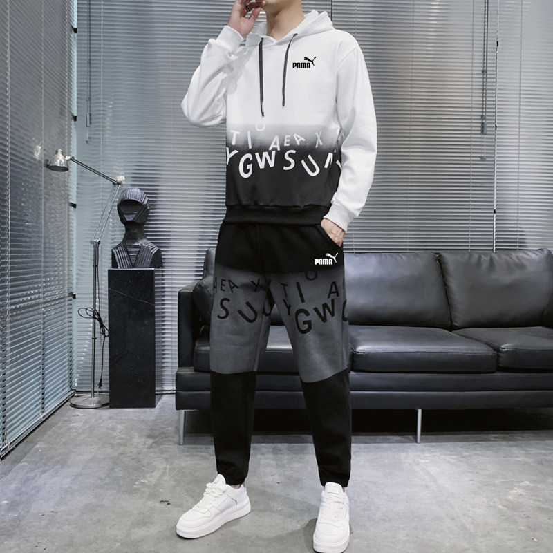 Classic Couple Spring and Autumn Sweater Suit Men's Casual Sportswear Large Size Loose Hooded Color Matching Set of Clothes