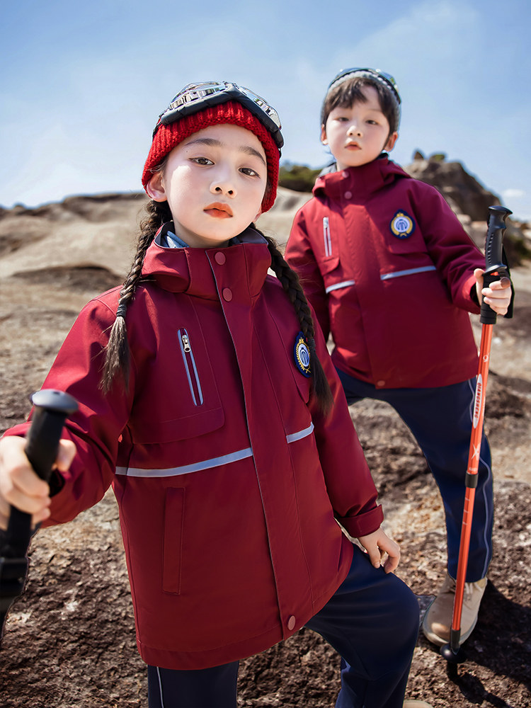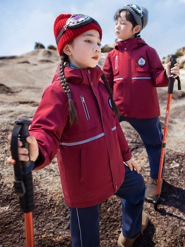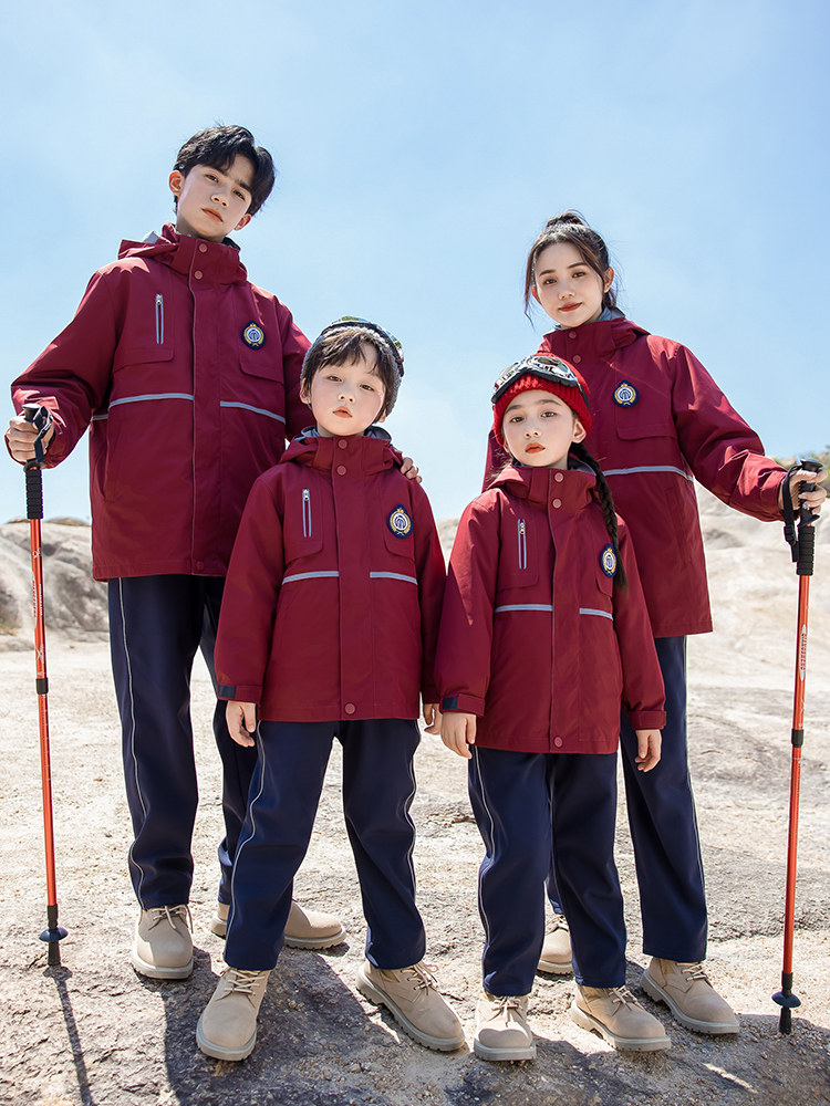 Red junior high school and high school students' school uniforms, jackets, down liners, three-piece sets, kindergarten uniforms, elementary school students' class uniforms