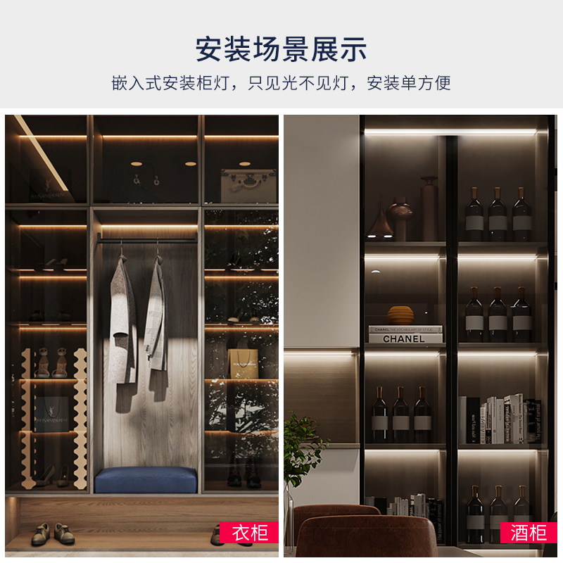 Embedded cabinet light 10*10 slotted concealed linear light strip with wardrobe laminate wine book hanging cabinet shoe cabinet LED light