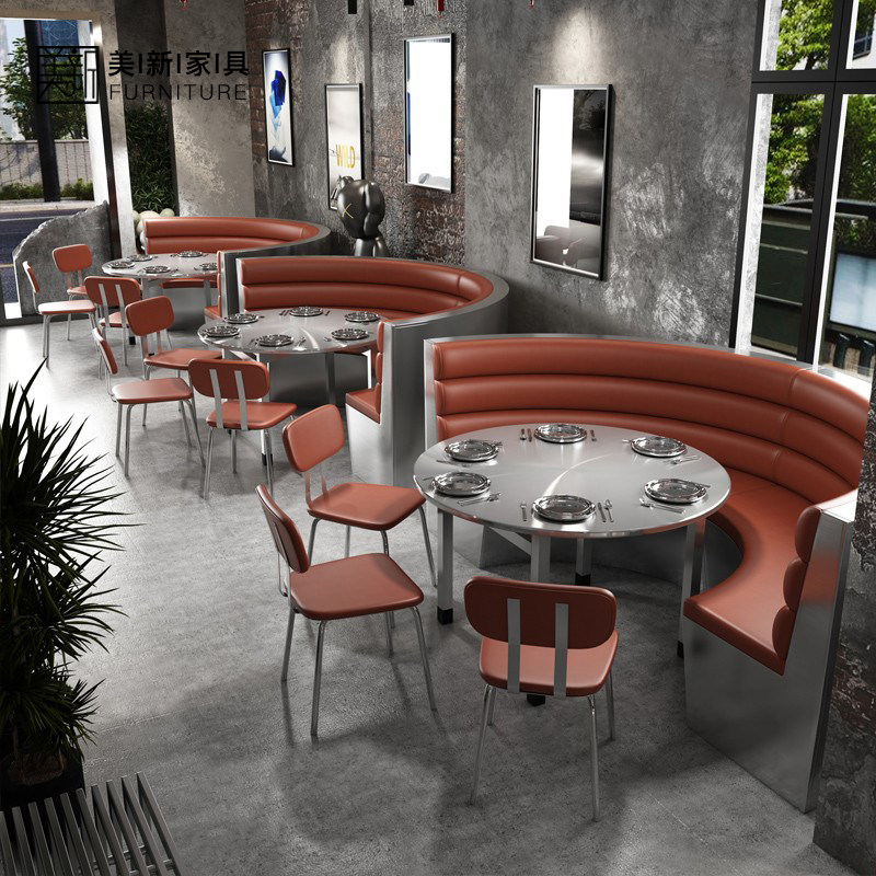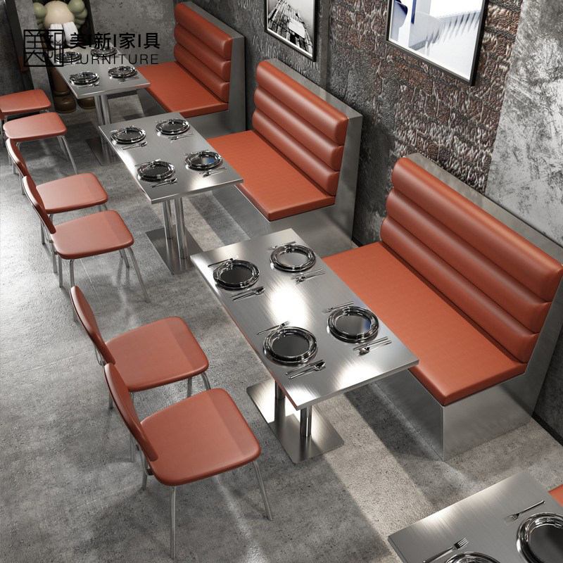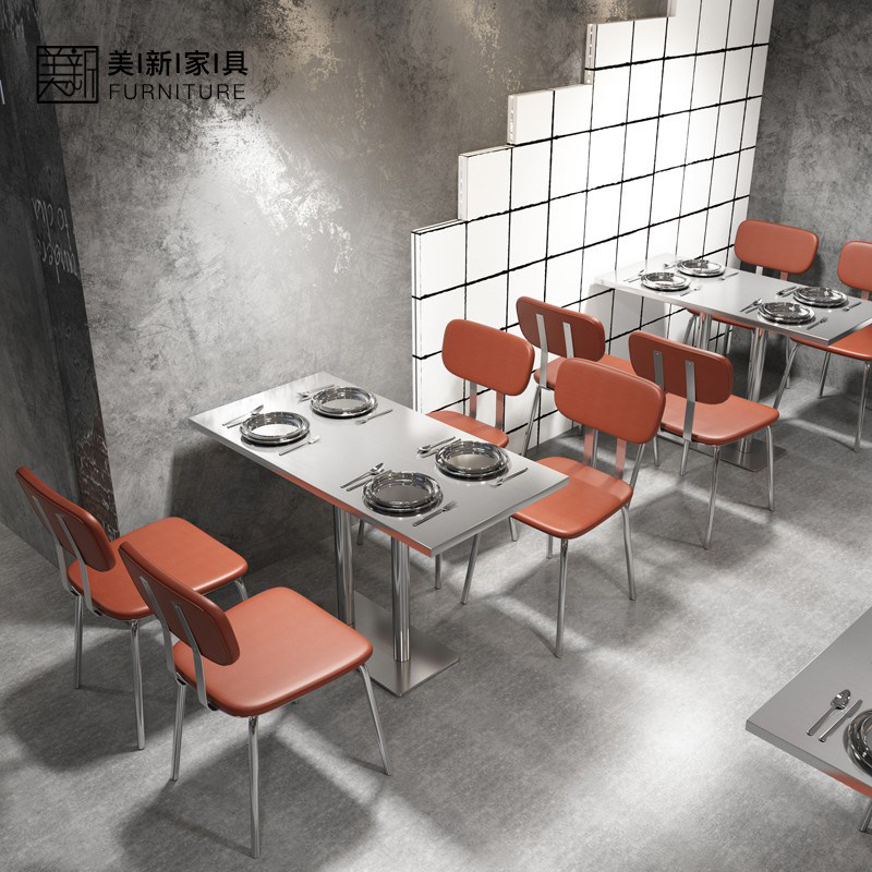 Customized stainless steel coffee shop milk tea shop dining bar industrial style leisure hot pot shop restaurant card seat dining table and chair combination