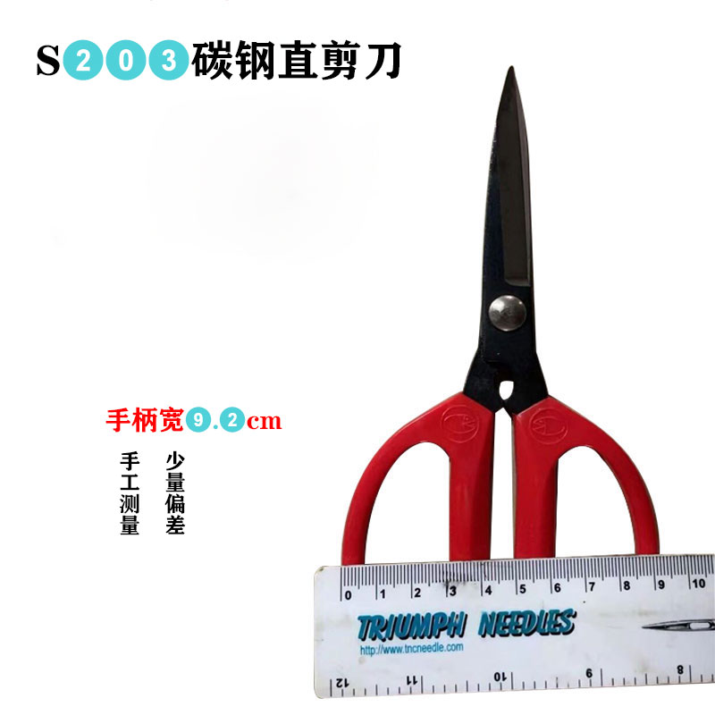 Fish head S203 scissors carbon steel straight scissors industrial workshop with cutting edge household office paper scissors