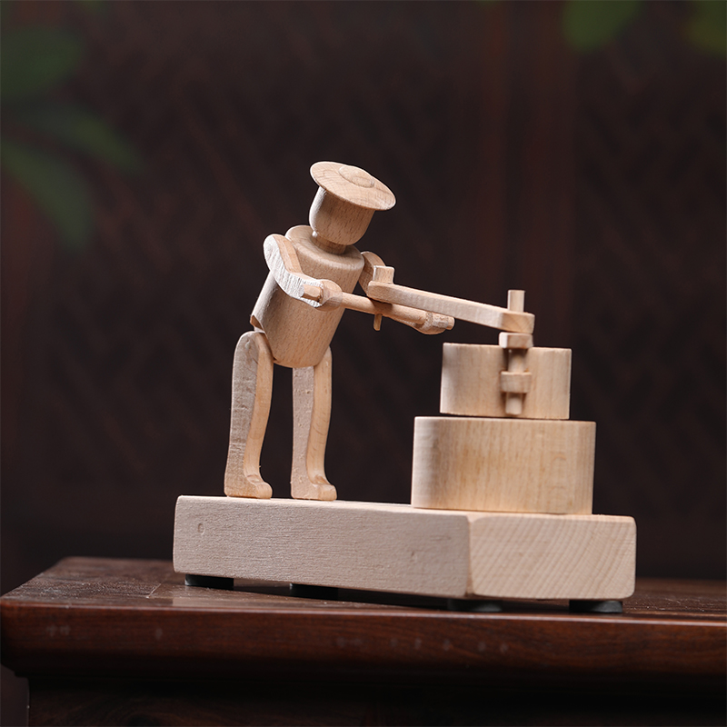 Beech Puppet Characters Toy Office Swing Pieces Gift solid wood Handmade Paddy Straw Man-Taobao