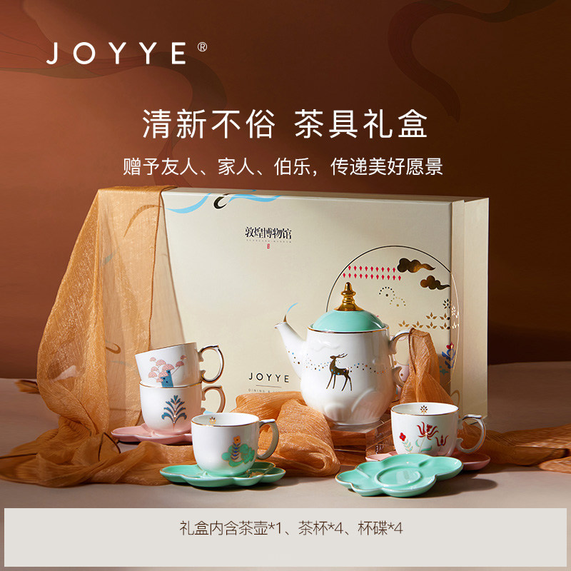 JOYYE Museum working together with tea set in the afternoon flower tea pot ceramic cup disc gift box creative home living room-Taobao