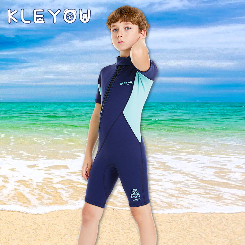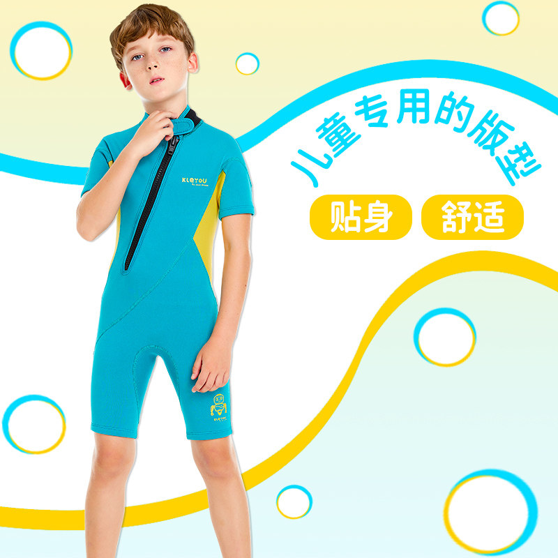 KLEYOU children's swimsuit 2MM thickened cold-proof warm boys and girls short-sleeved one-piece swimsuit diving suit