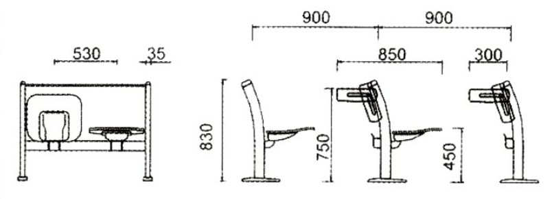 Curved wood multimedia student desks and chairs ladder classroom with rows of steel and wood conference chairs automatic folding training chairs