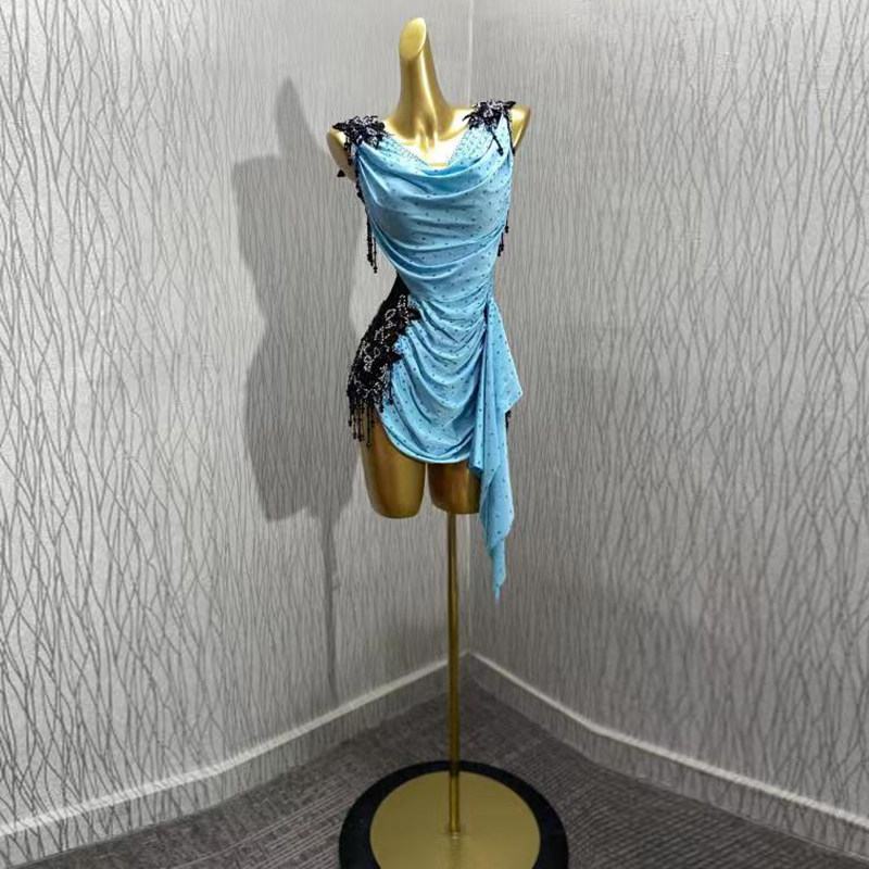 Latin dance collar match dress Lumba dance wrinkle show suit just imitated the Olympic Diamond clothes patch belt