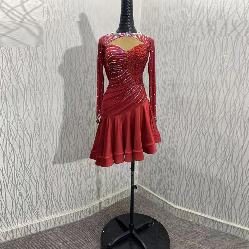 Latin dance competition skirt wrinkle skirt swing with neck collar and lomba dance-like drill costume just performed