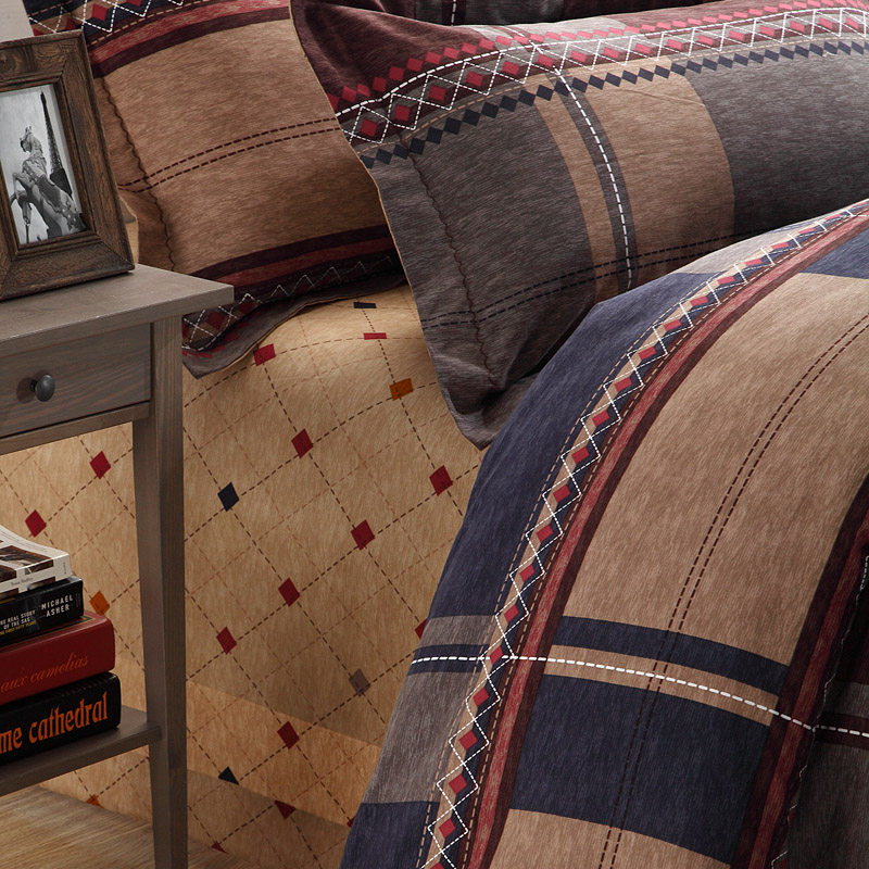 Autumn and winter simple light luxury cotton thickened brushed four-piece set pure cotton warm striped quilt cover bed sheet bedding