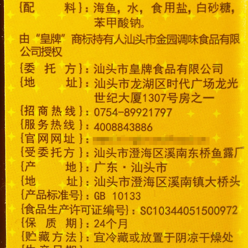 Sea fish water, edible salt, white sugar, sodium benzoate, etc. The actual information on the outer packaging of the product shall prevail