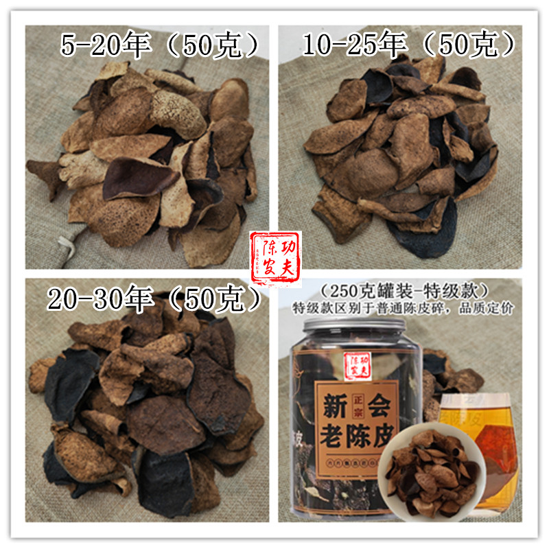 Authentic Jiangmen Xinhui tangerine peel broken real first-line core production area big red skin old tangerine peel broken 5 years 25 years 50g