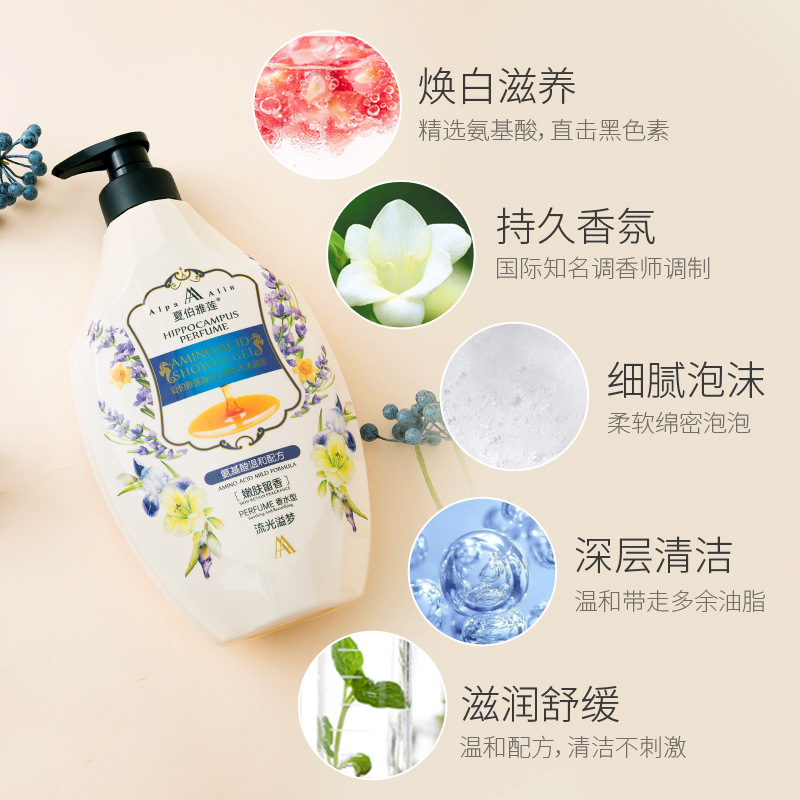 Xiabo Yalian Amino Acid Long-lasting Fragrance Large-capacity Family Pack Refreshing, Soothing, Rejuvenating, Skin-beautifying, Floral Shower Gel