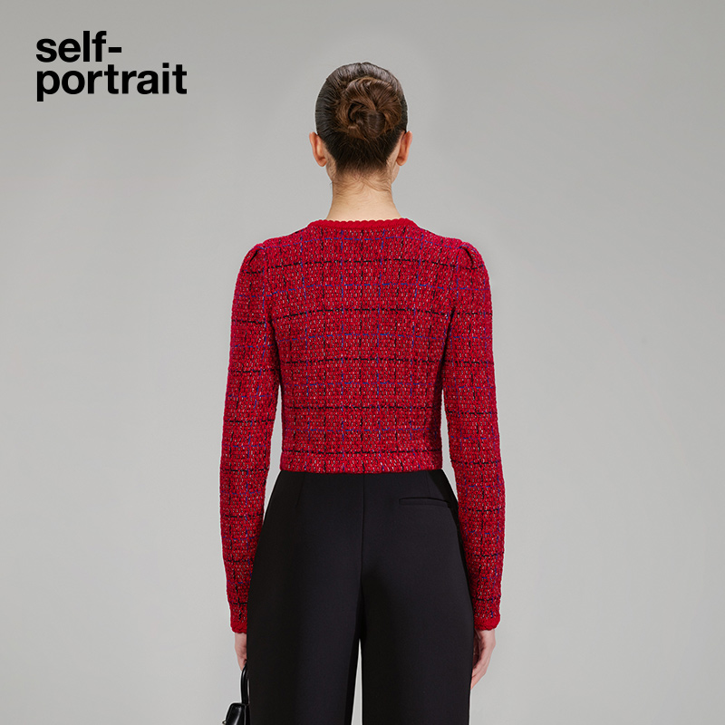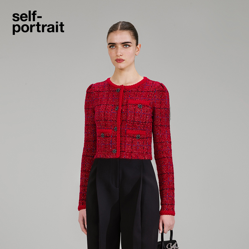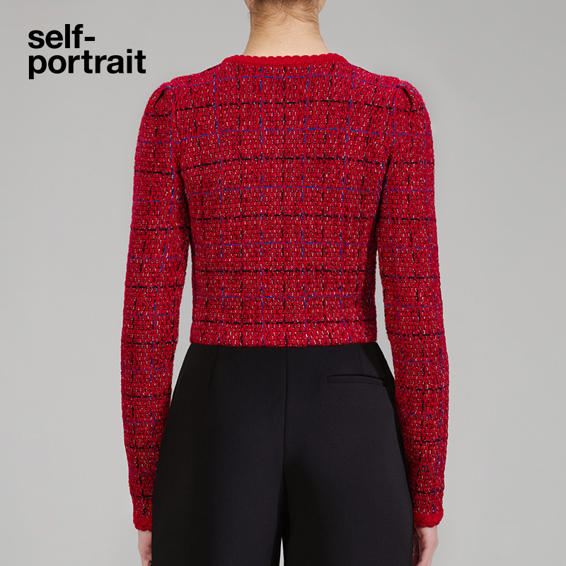 self-portrait 2022 autumn and winter red blended round neck atmosphere knitted cardigan