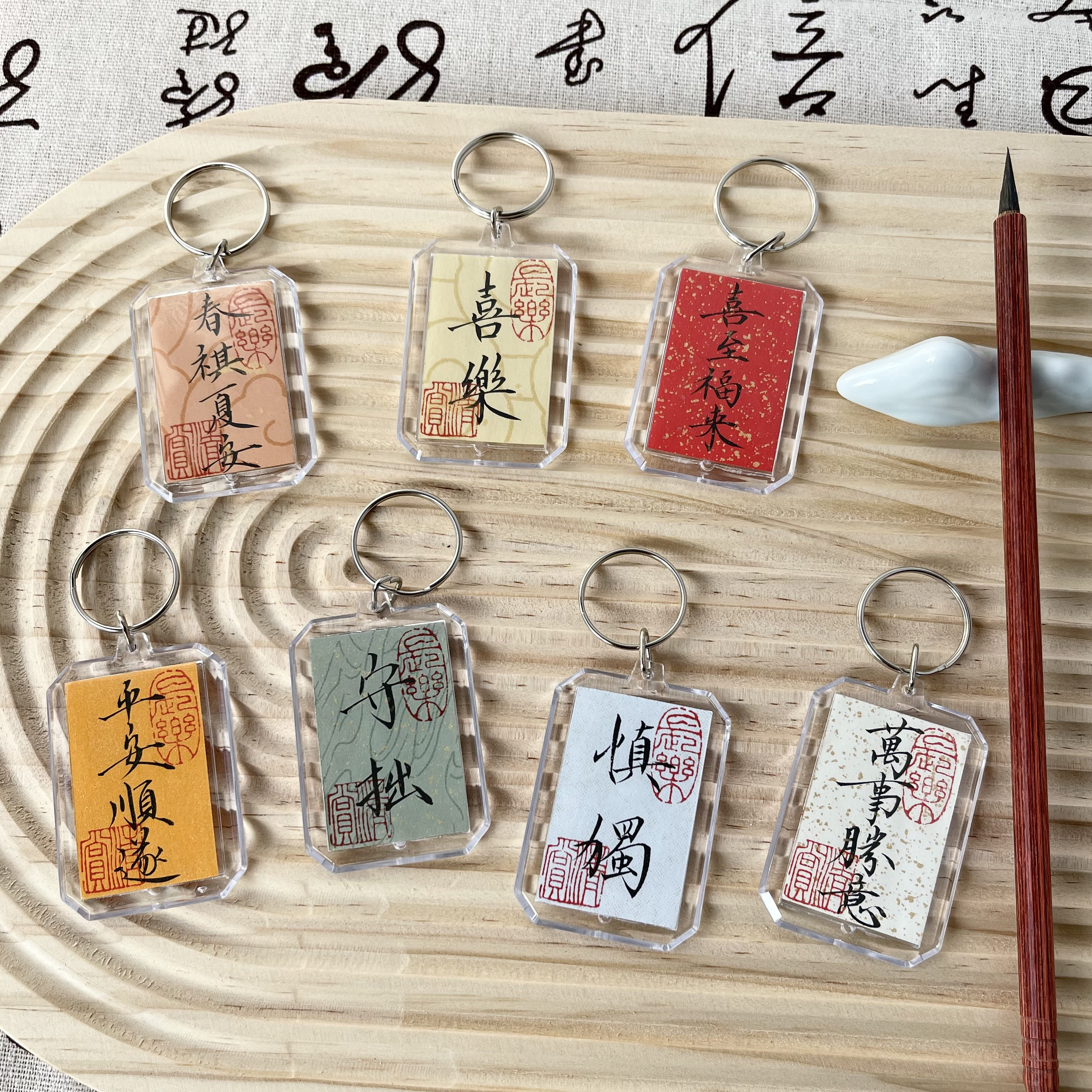 Calligraphy key buckle pendant pure handwriting Chinese wind bag hanging decoration Xiaokai Books Thin Gold Body Calligraphy Name Custom-Taobao
