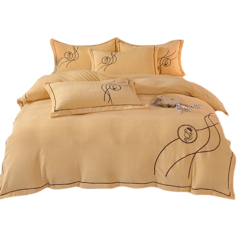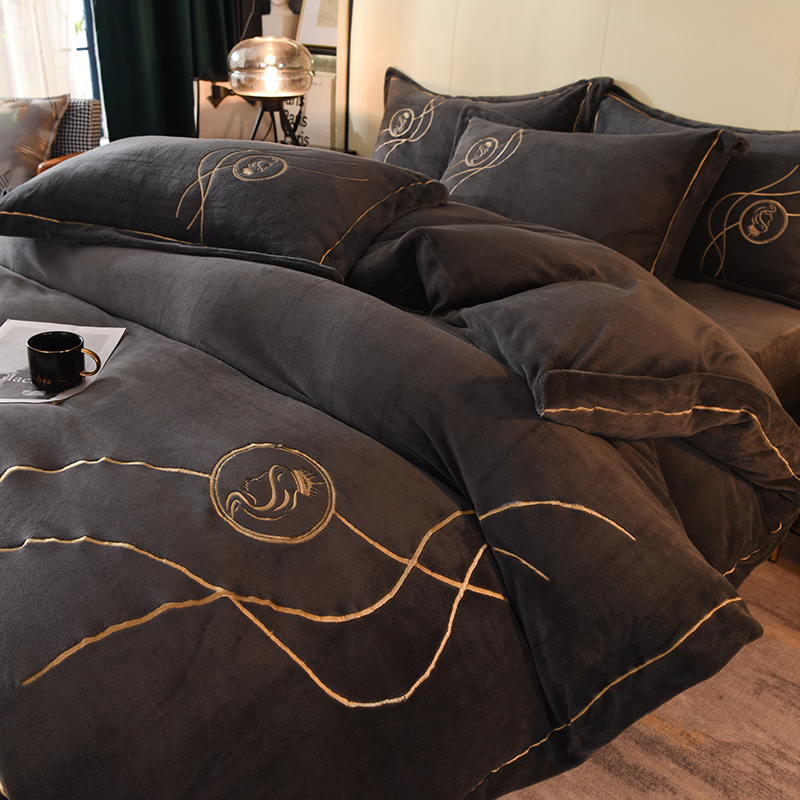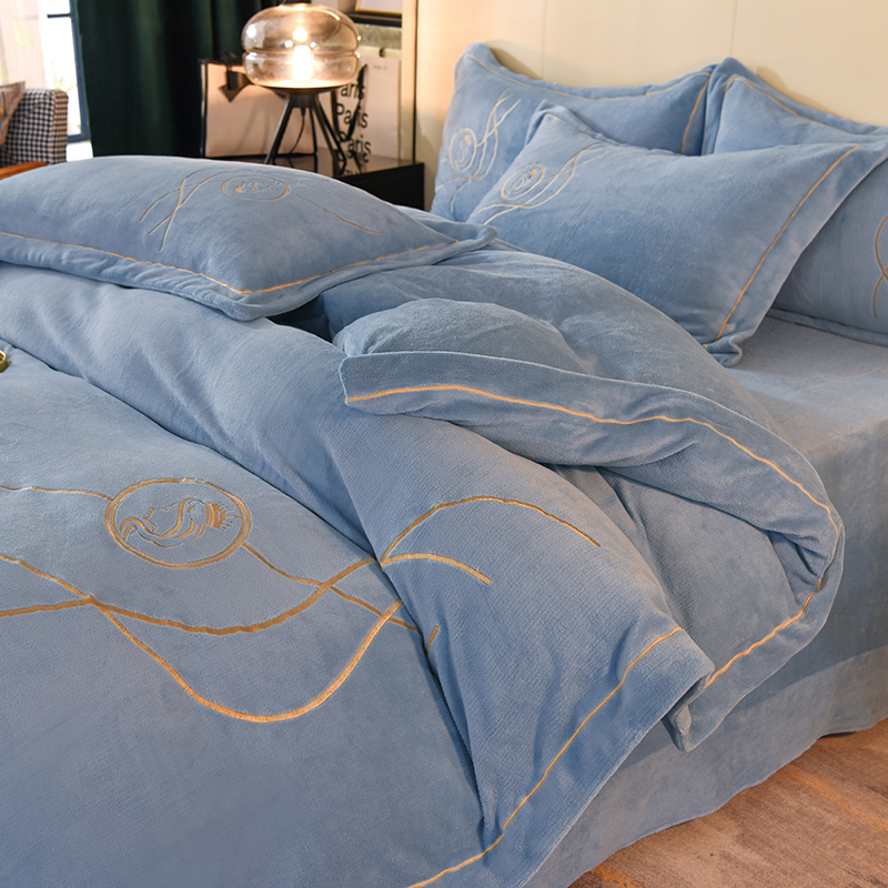 Light luxury milk velvet bed four-piece set winter thickened Farai velvet baby velvet bed sheet quilt cover non-slip mattress cover